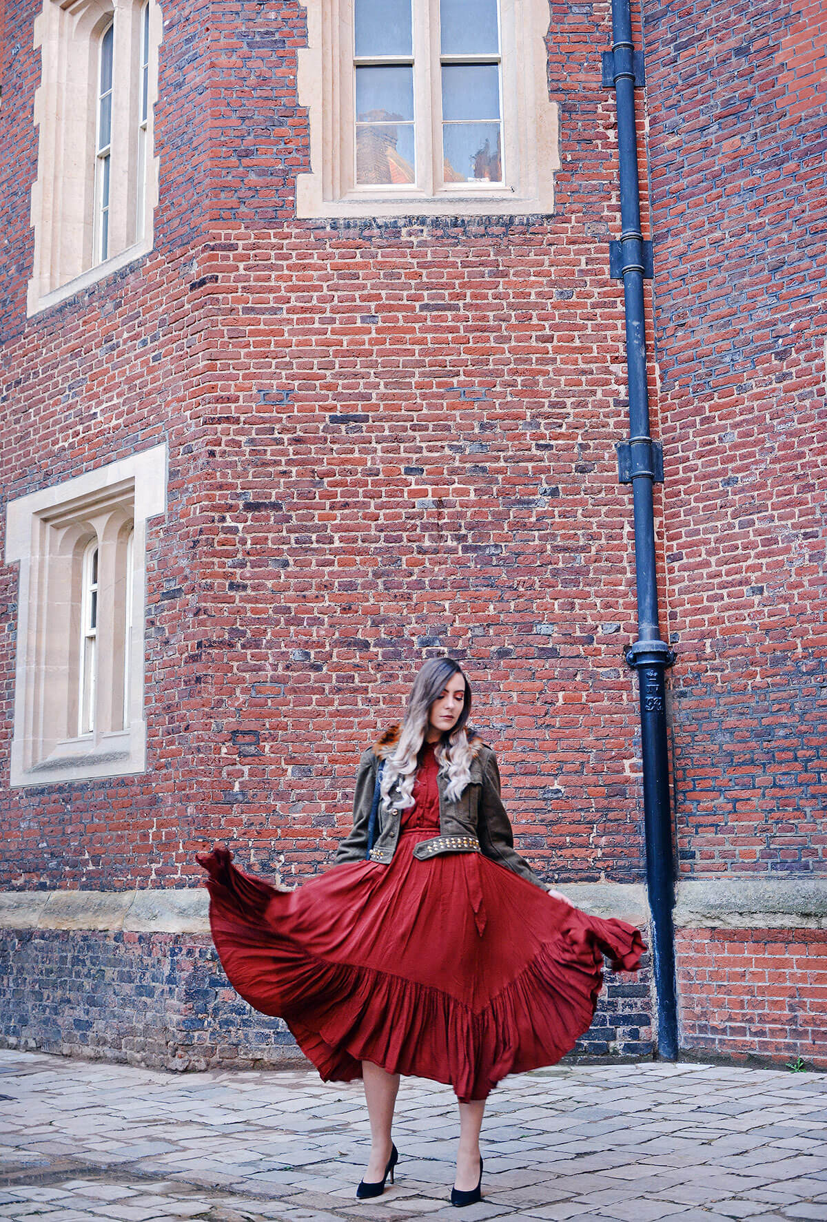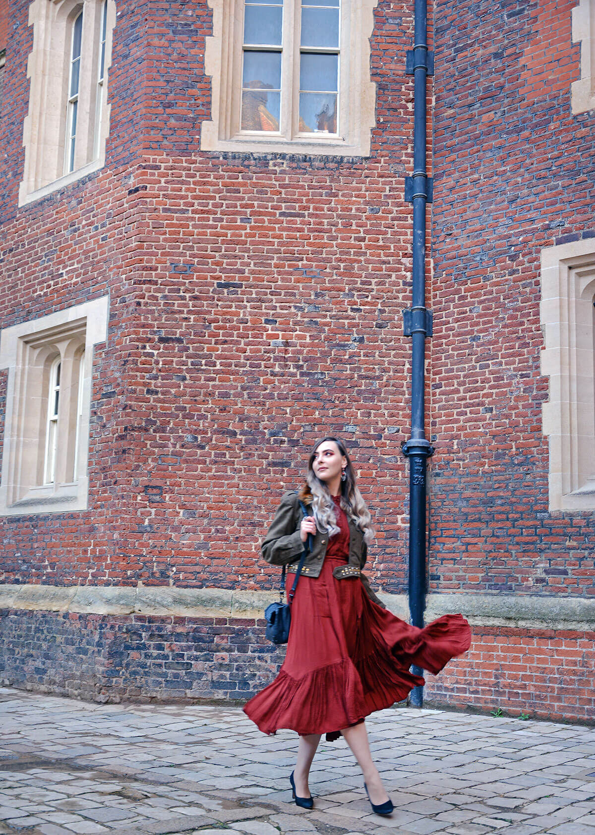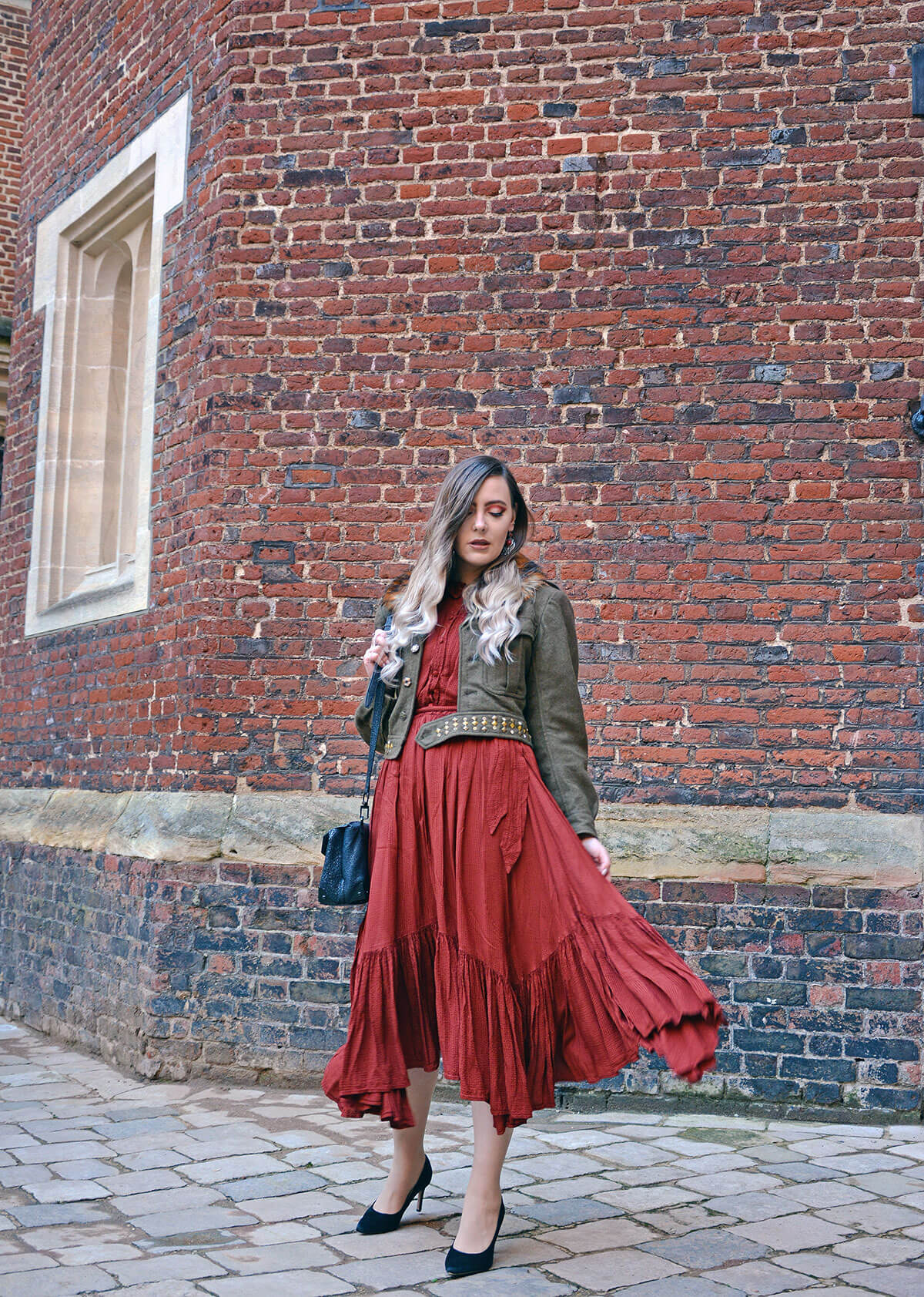 Dress: Ghost London, Heels: Clarks, Jacket: Will & Pop, Jewellery: Silver & Carnelian Jewellery from Own Collection, Bag: Alexander Wang