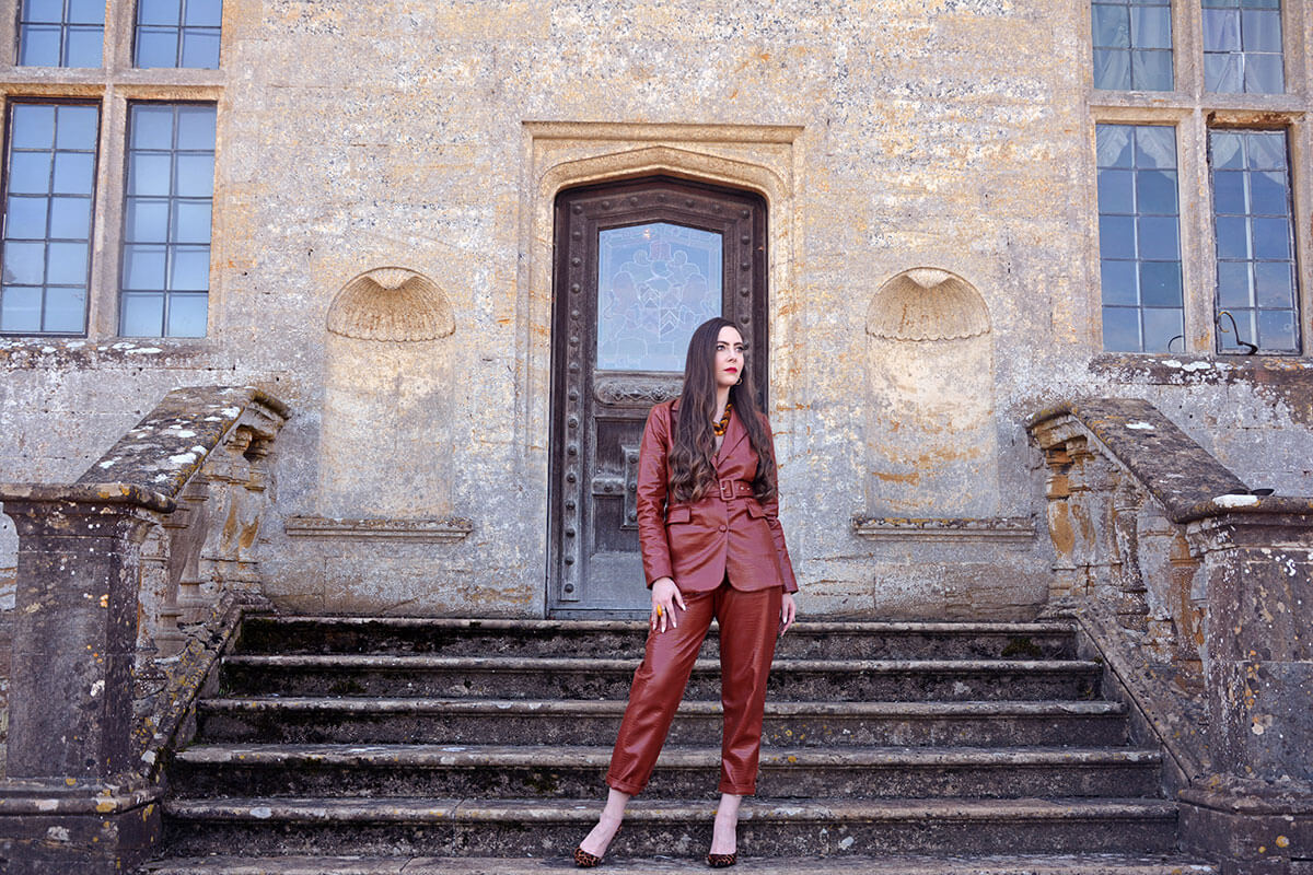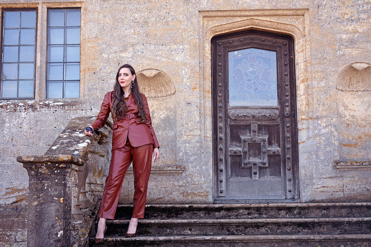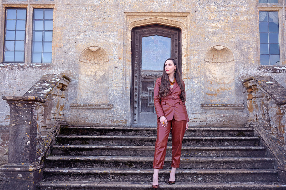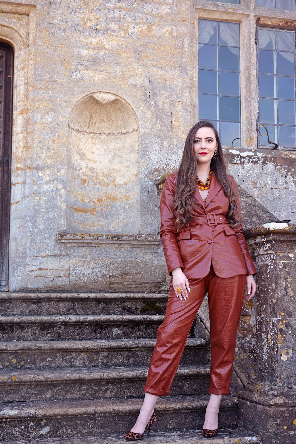 I have always been very careful with amber. I feel amber has a very strong resemblance to me. You see, we both have only two modes. I either look like a troubled teen in a tracksuit or photography ready. In the same way, amber jewellery is either so ultra modern, it almost looks experimental, or so traditional and old-fashioned, it may be best to leave it in your grandma’s jewellery box. I felt it was my mission to break this mental limit I had with amber, and find an in-between. This is why I styled my amber pieces with an edgy full leather-look suit.