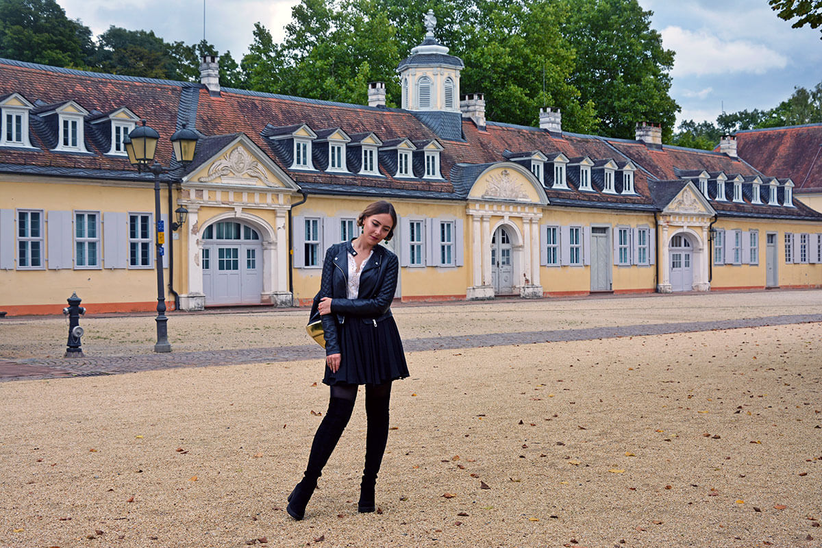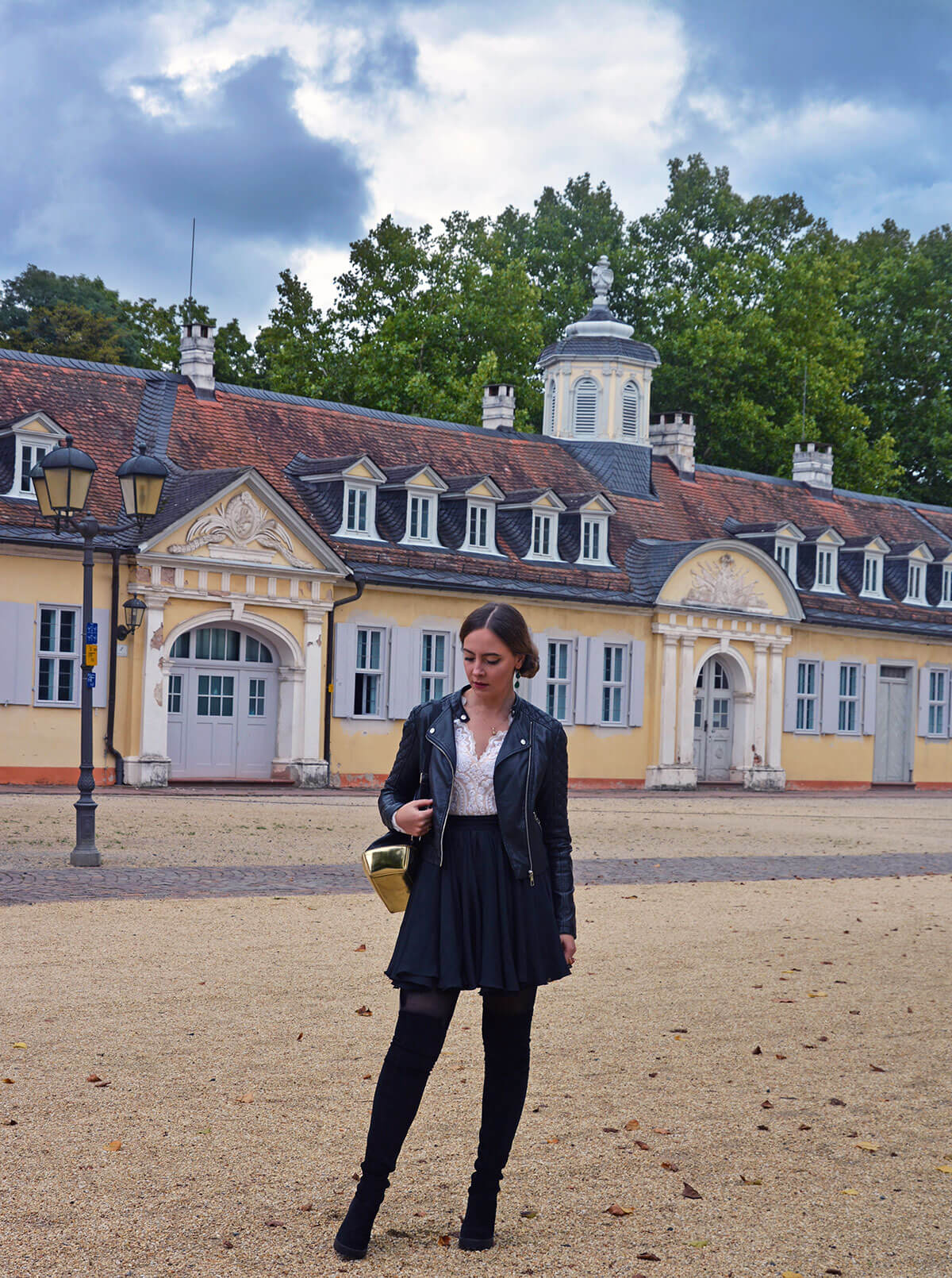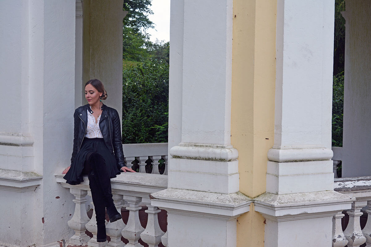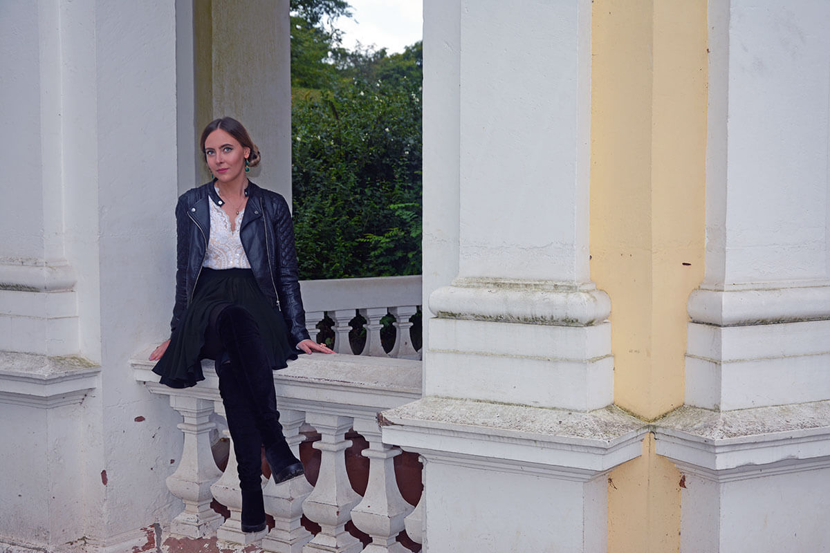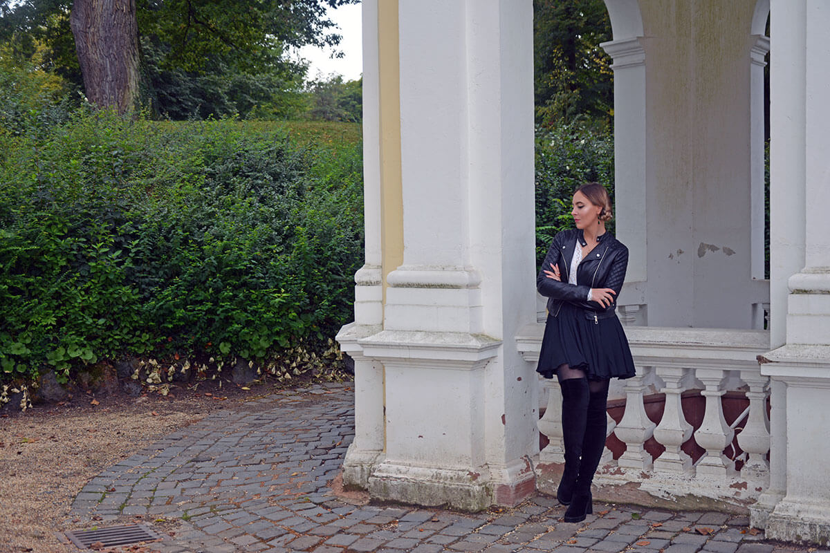 Leather Jacket: Lipsy, Boots: H&M, Top: Quiz Clothing, Skirt: Dorothy Perkins, Backpack: Moschino