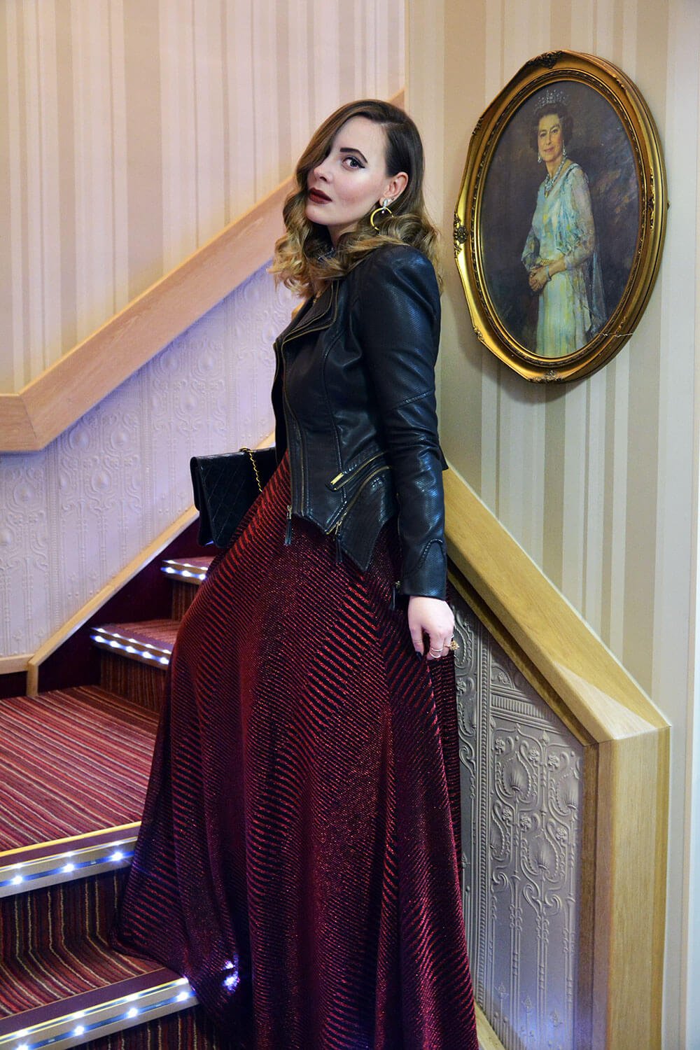 You look incredibly glamorous! I love your hair this way, and your makeup is stunning. Such a great idea to add the leather jacket over that dress!