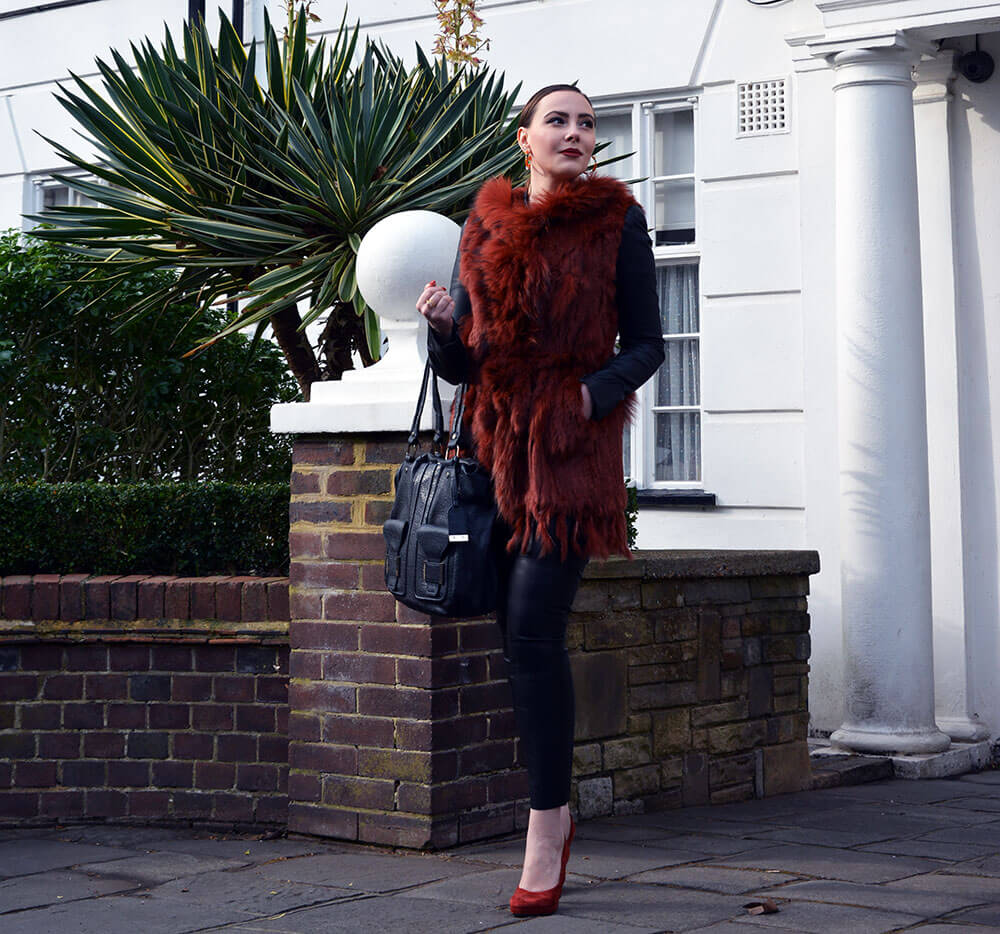 Do you ever get “funny” reactions when wearing fur? I often itch to pull mine out, but don’t feel 100% comfortable… You look absolutely gorgeous and this shade of red is amazing on you! x