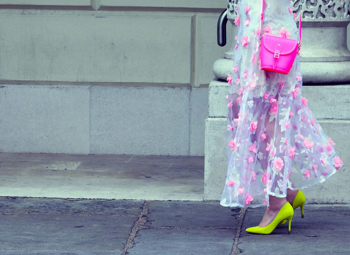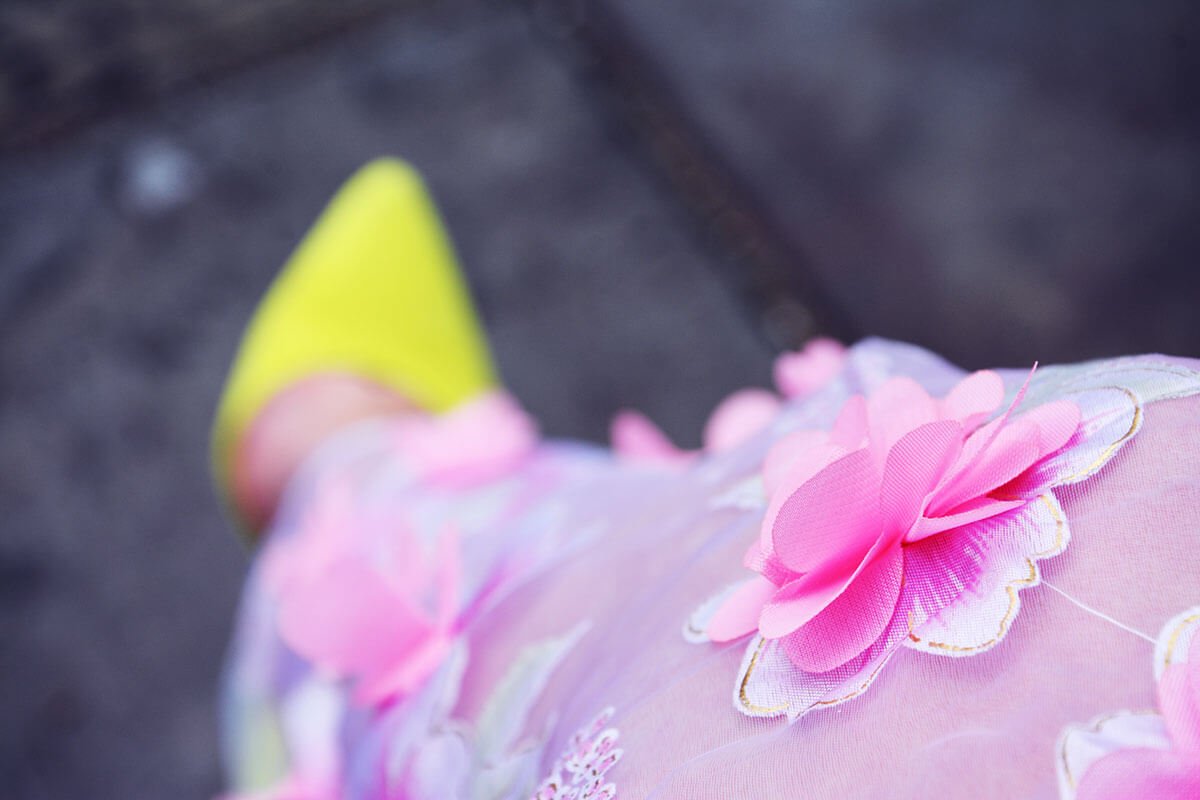 You are a vision in this dress! Love the details and the contrast of the neon shoes with the look. Gorgeous lady!