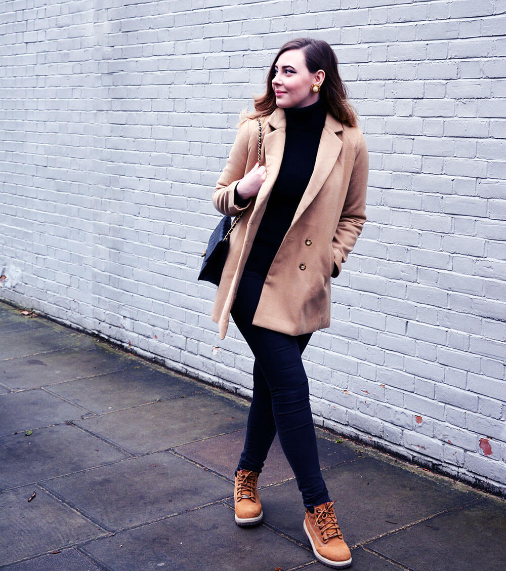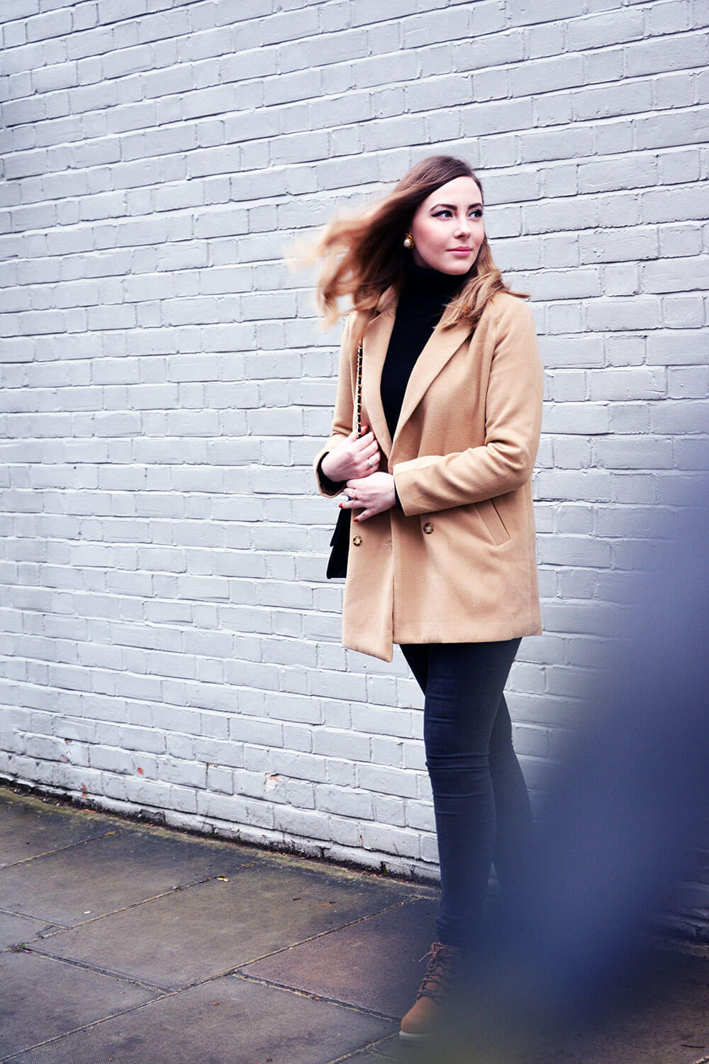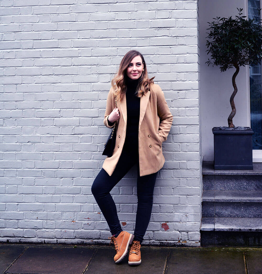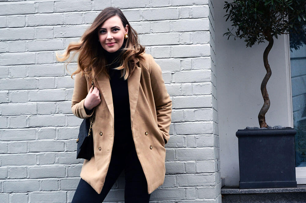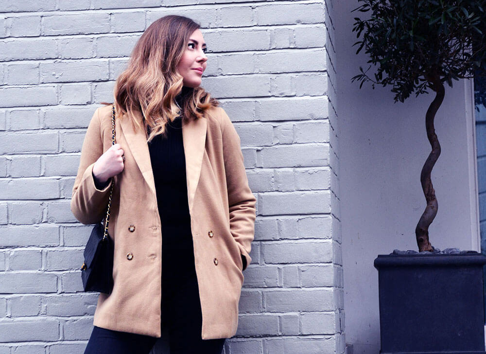 This camel coat is such a classic piece! Love how it pops agains the black shirt and pants!
