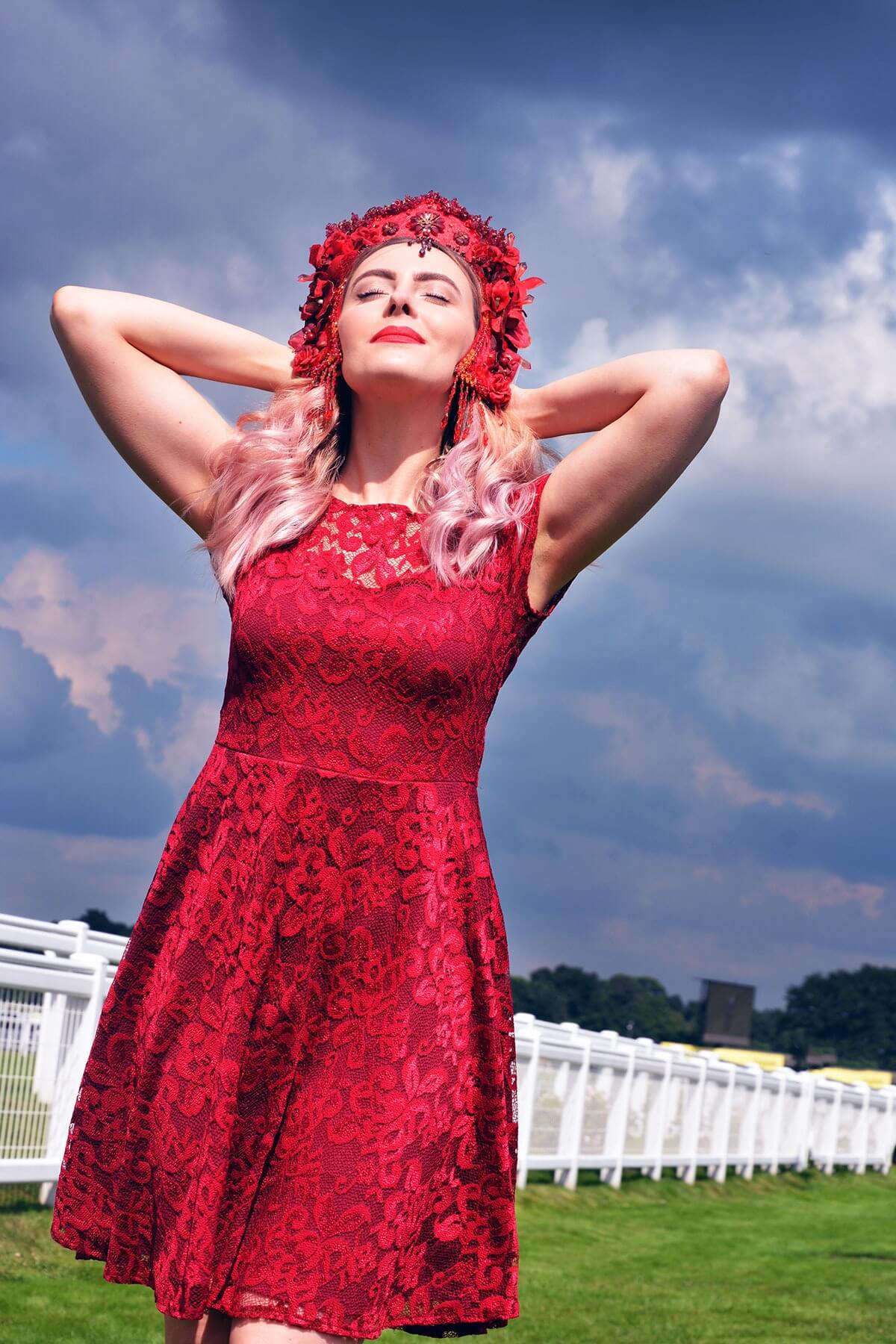 Such a gorgeous headpiece, stunning with the red dress! Xx