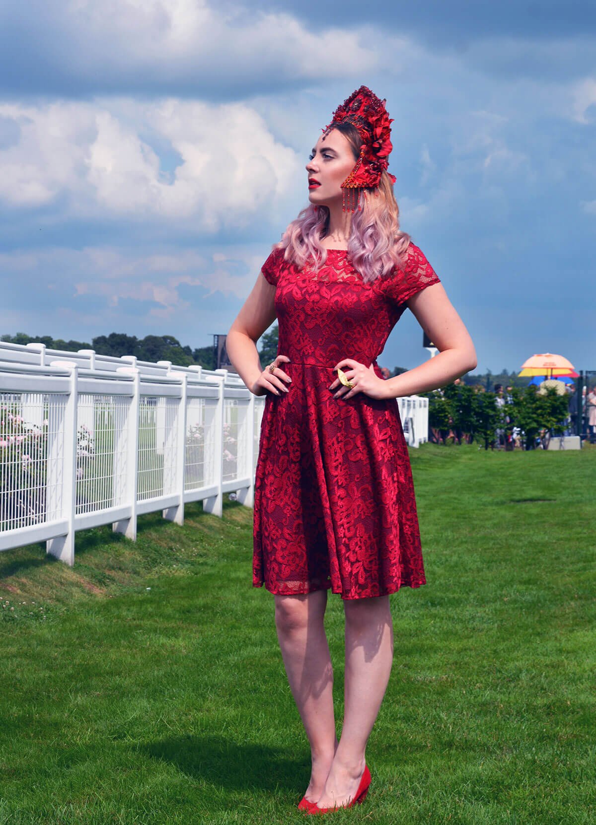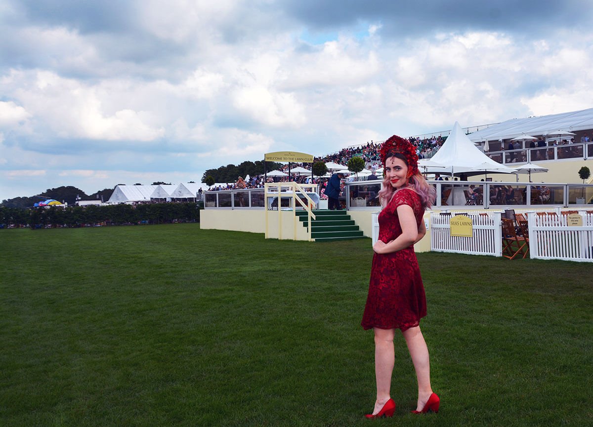 Coming back to Ascot, I must talk about the races themselves. They were like short bursts of energy fuelling the day, with the presenter’s superfast commentary like a shot of vodka in one’s Red Bull: Sharp, exciting and invigorating. Having said that, some of the other interactions were less pleasing. I was lucky enough to be in a group of wonderful women all whom work in fashion journalism and see over-the-top styles on the daily. Walking through the crowds, had my squad not been there, I would have felt borderline frightened. Other elegantly hatted ladies tended to stare each other down top to bottom and back again. Meow! If you are going to Ascot next year, be mindful of that – these are not just empty words.