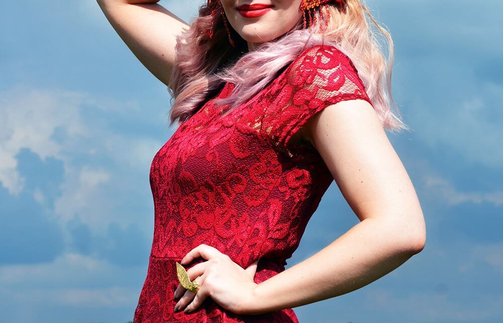Love the red lace dress, you stunning head piece, and your passion for your heritage and high-fashion! Also red is your color! 🙂