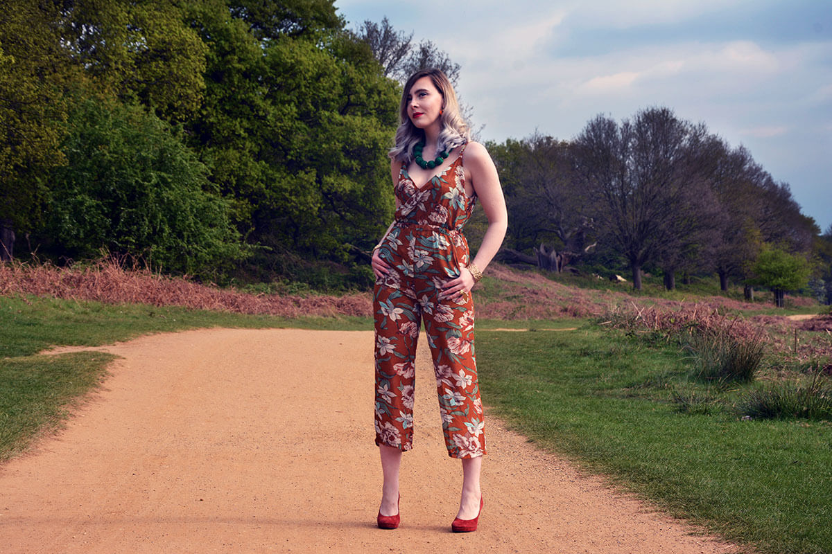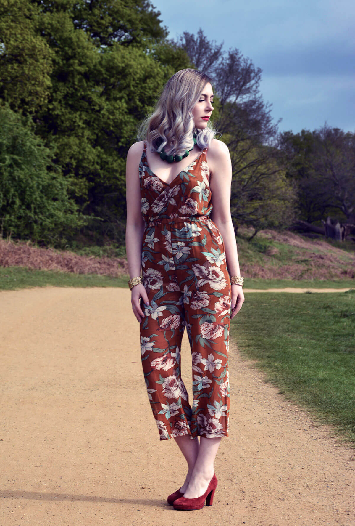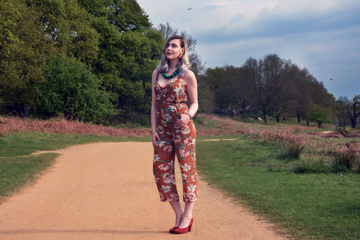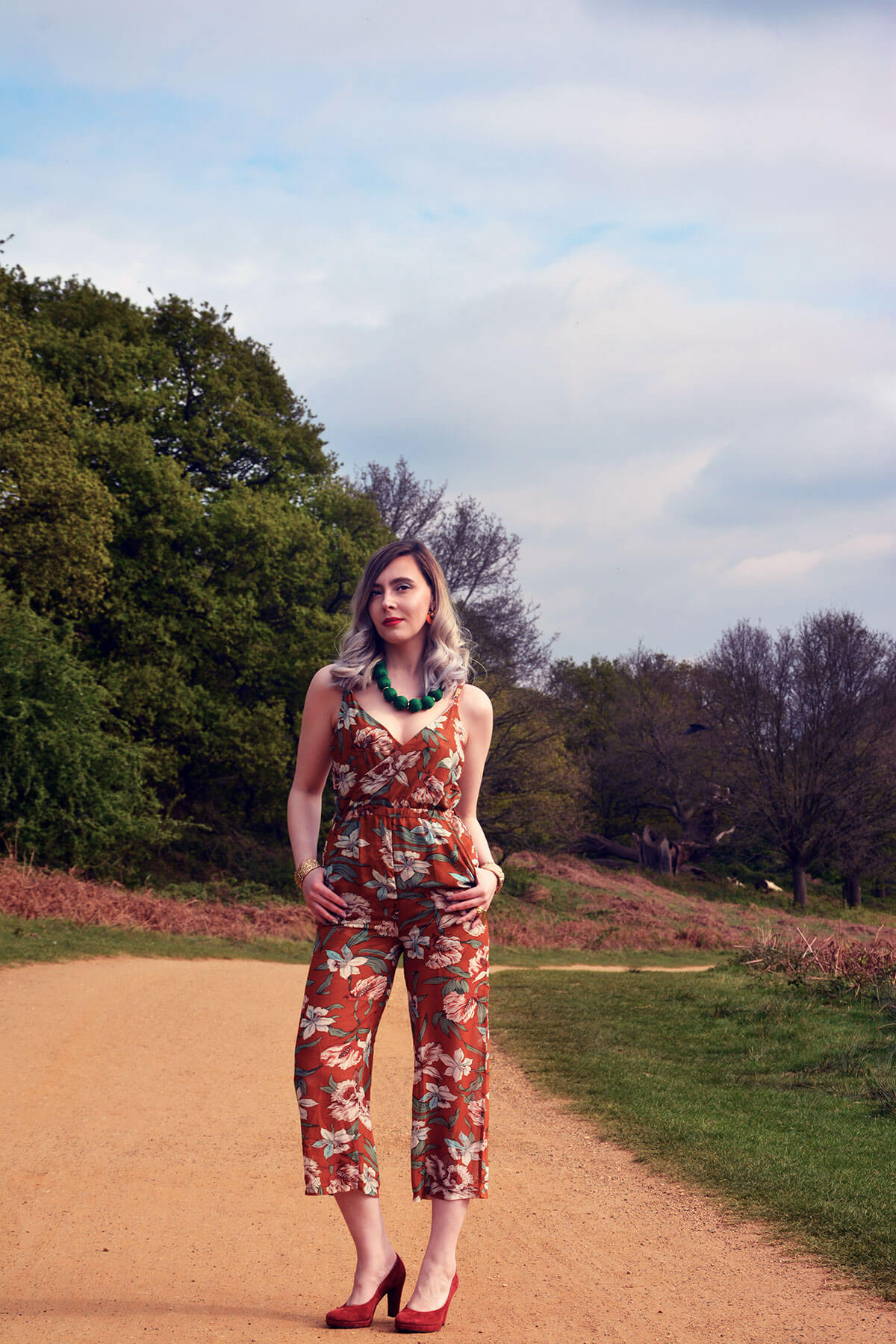 The jumpsuit looks amazing on you! Florals can make any colour spring appropriate 🙂
