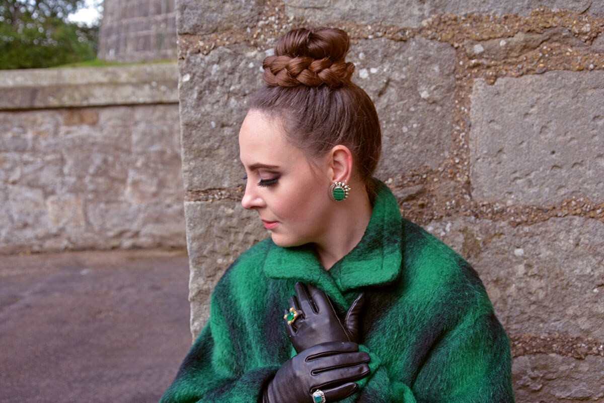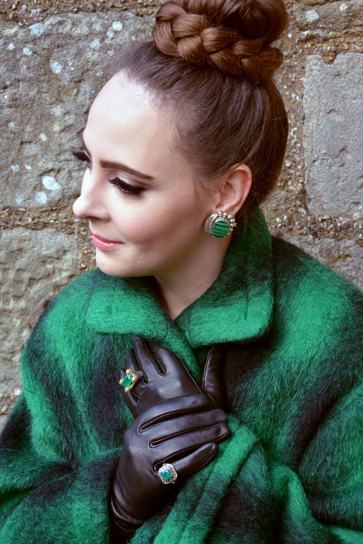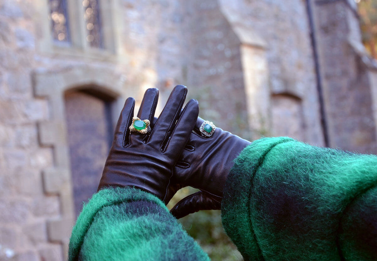 In the images I am wearing malachite earrings, chrysoprase and green agate rings.