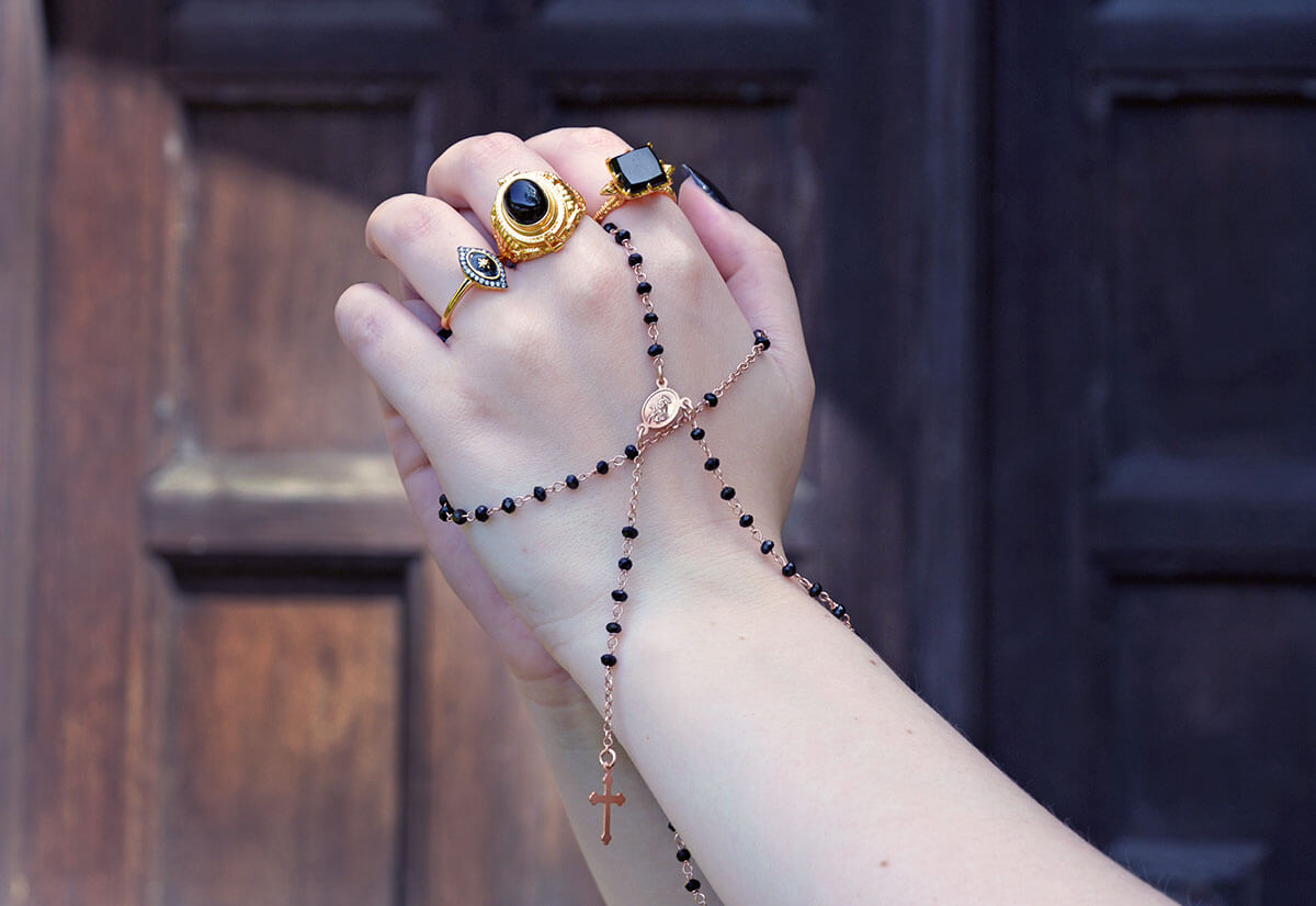 Ancient Egyptians lived their whole lives in anticipation of death, however the philosophy about seizing the day as death was coming for each and everyone of us originated in classical antiquity, through great thinkers such as Democritus and Plato. Its fame rose rapidly as more people converted to early Christianity. Within Christianity, it’s important to showcase death as a moment of transition into heaven or hell, the latter requiring a very specific association with evil, darkness and malice. This was a tool to ensure that good deeds were focussed on while we were alive as they were a ticket to heaven. Hell, of course, awaited everyone who deviated from the programme. Memento mori became a particularly useful reminder that death was not optional, and heaven or hell were ultimate destinations for us all. Read up more about religious jewellery here.