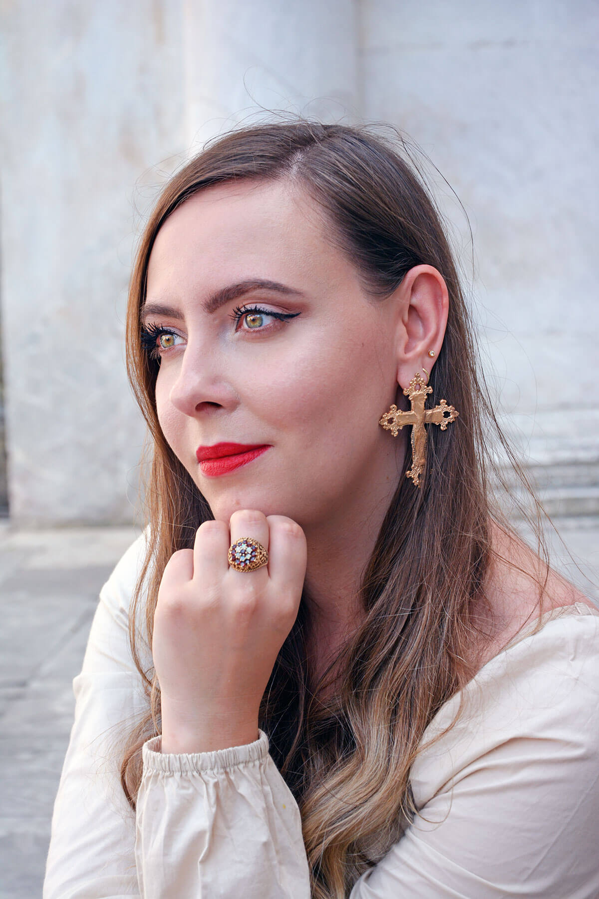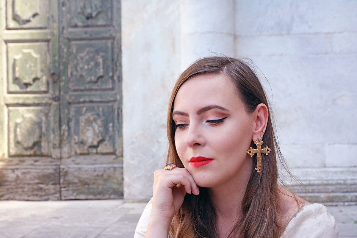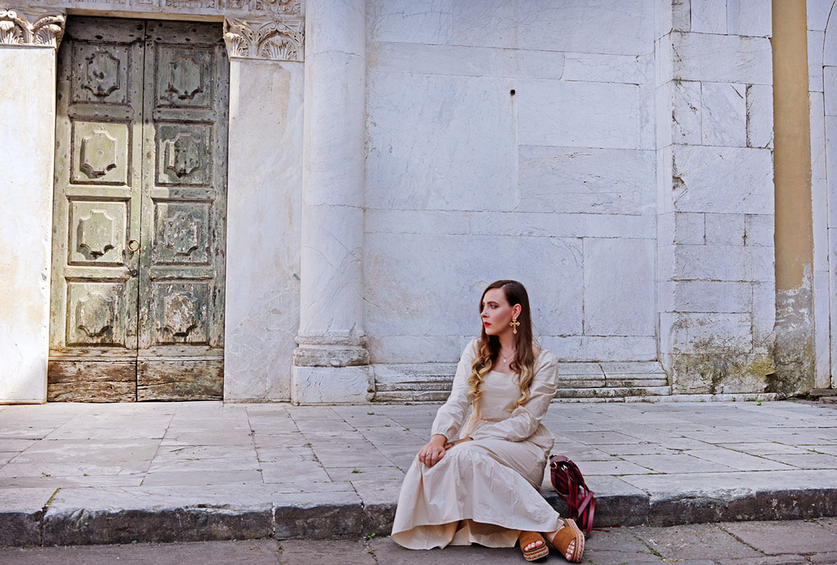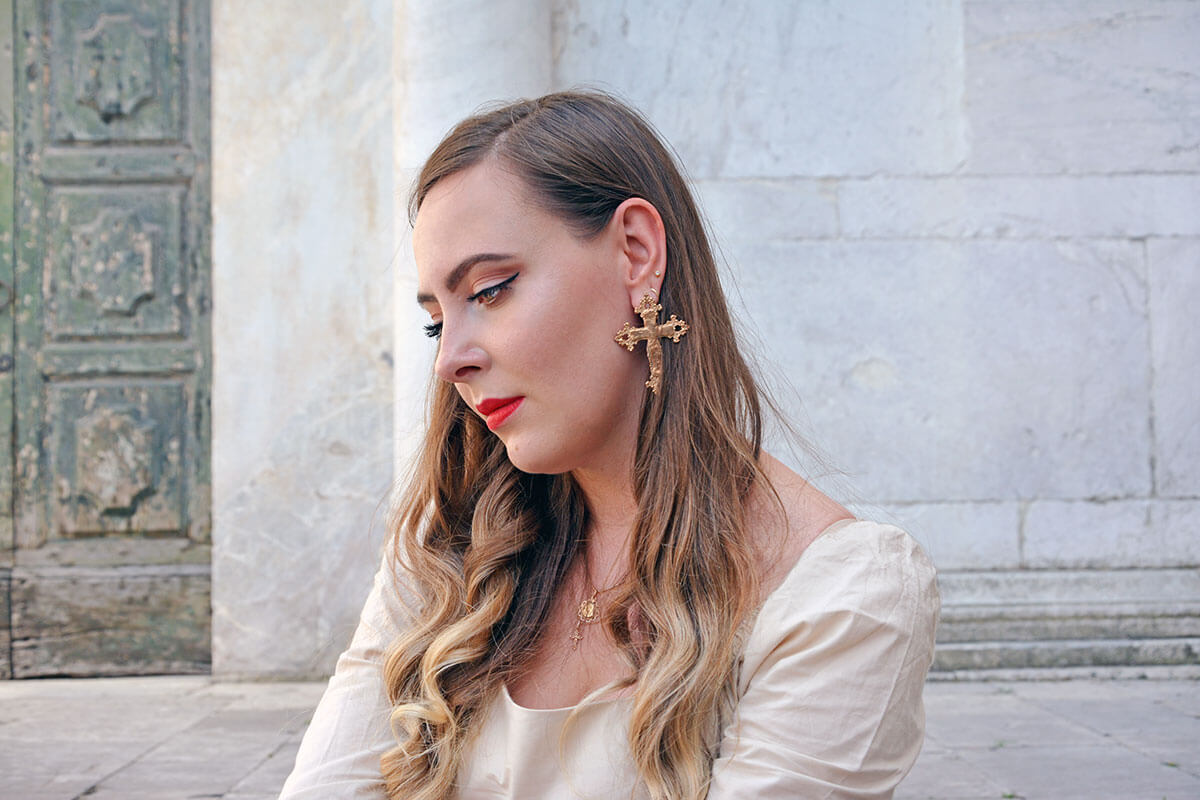 In the pictures below I am either not convinced of my mother’s philosophy, or I am a rebel trying my luck. Either way, these Byzantine cross earrings looked like they belonged as I strolled through Lucca, the city of one hundred churches, strongly vibing with Instagram’s religious aesthetic. I remember pondering, was I showing appreciation or was this appropriation at this point as my religious days had ended with my teen years. This was before I read the buddhist warrior monk’s advice to stop thinking too much.