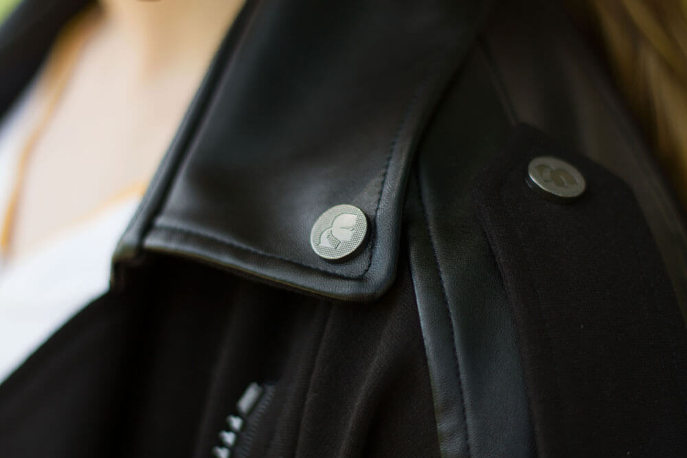 I love the little Uncle Karl head on this Lagerfeld vest, a very clever non-intrusive branding strategy. Territory marked.